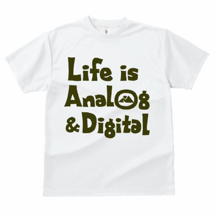 そんな登山の本質をシンプルに表現したキャッチフレーズ 「Life is Analog & Digital」 を大胆にプリントした速乾DRY-TEE が登場!